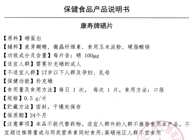 康壽牌硒片